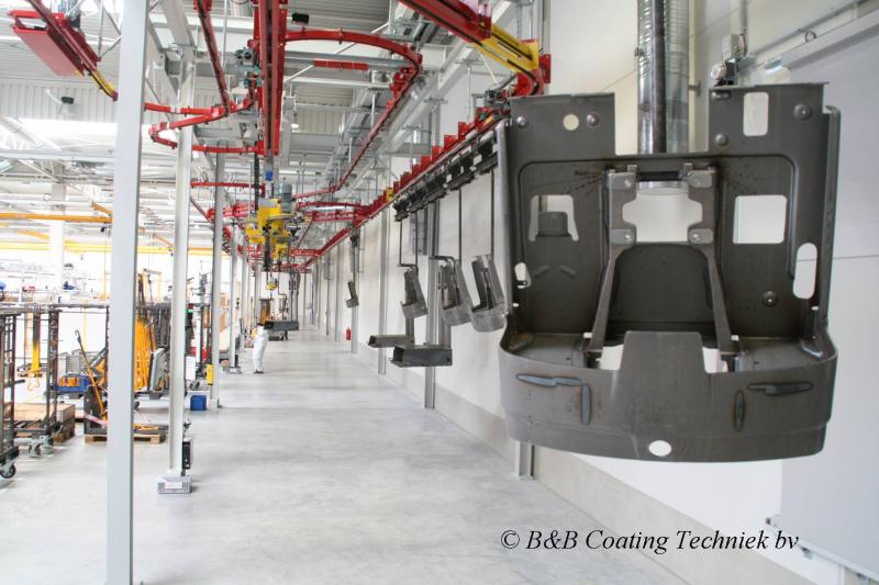 Ontwerp, constructie en inrichten van een volledig nieuwe, vergaand geautomatiseerde productielijn voor poedercoaten van intern transportmaterieel.